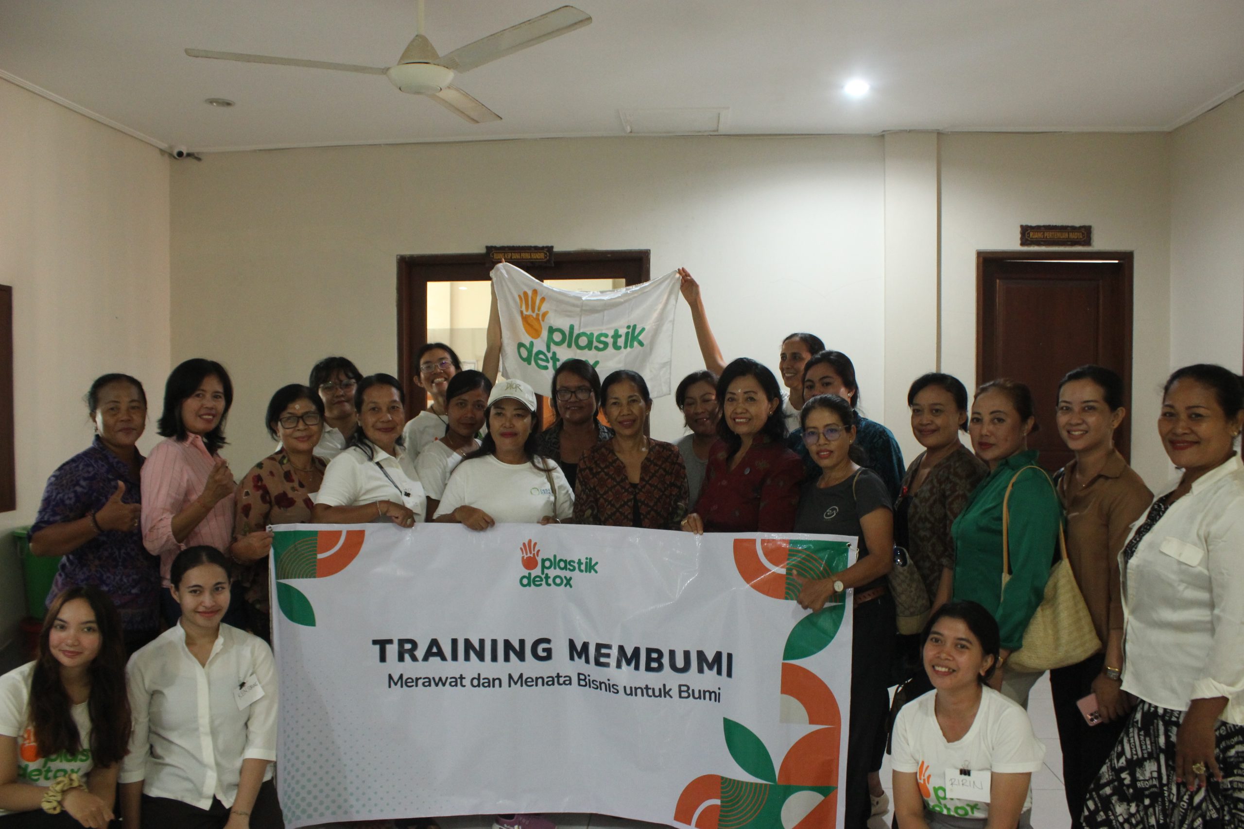 Selama dua jam, pelatihan MemBumi sukses dilaksanakan bersama 16 orang peserta dari ibu-ibu PKK yang mempunyai usaha di Desa Sanur Kauh, pada Selasa, 15 Oktober 2024. Pelatihan MemBumi (Merawat dan Menata Bisnis untuk Bumi), merupakan salah satu program kerja PlastikDetox yang bertujuan untuk meningkatkan implementasi pengurangan plastik sekali pakai di kalangan pelaku usaha yang pada kesempatan ini dilaksanakan di Kantor Desa Sanur Kauh. Pelatihan MemBumi kali ini mengangkat topik menarik tentang alternatif plastik sekali pakai yang bisa digunakan ulang.