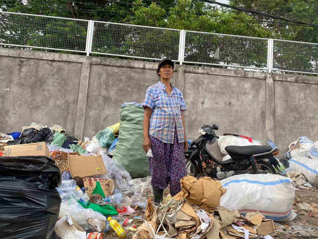 Seorang ibu paruh baya sedang bekerja di TPS Gunung Agung, Denpasar Barat, Selasa (28/11/2023). ©PlastikDetox