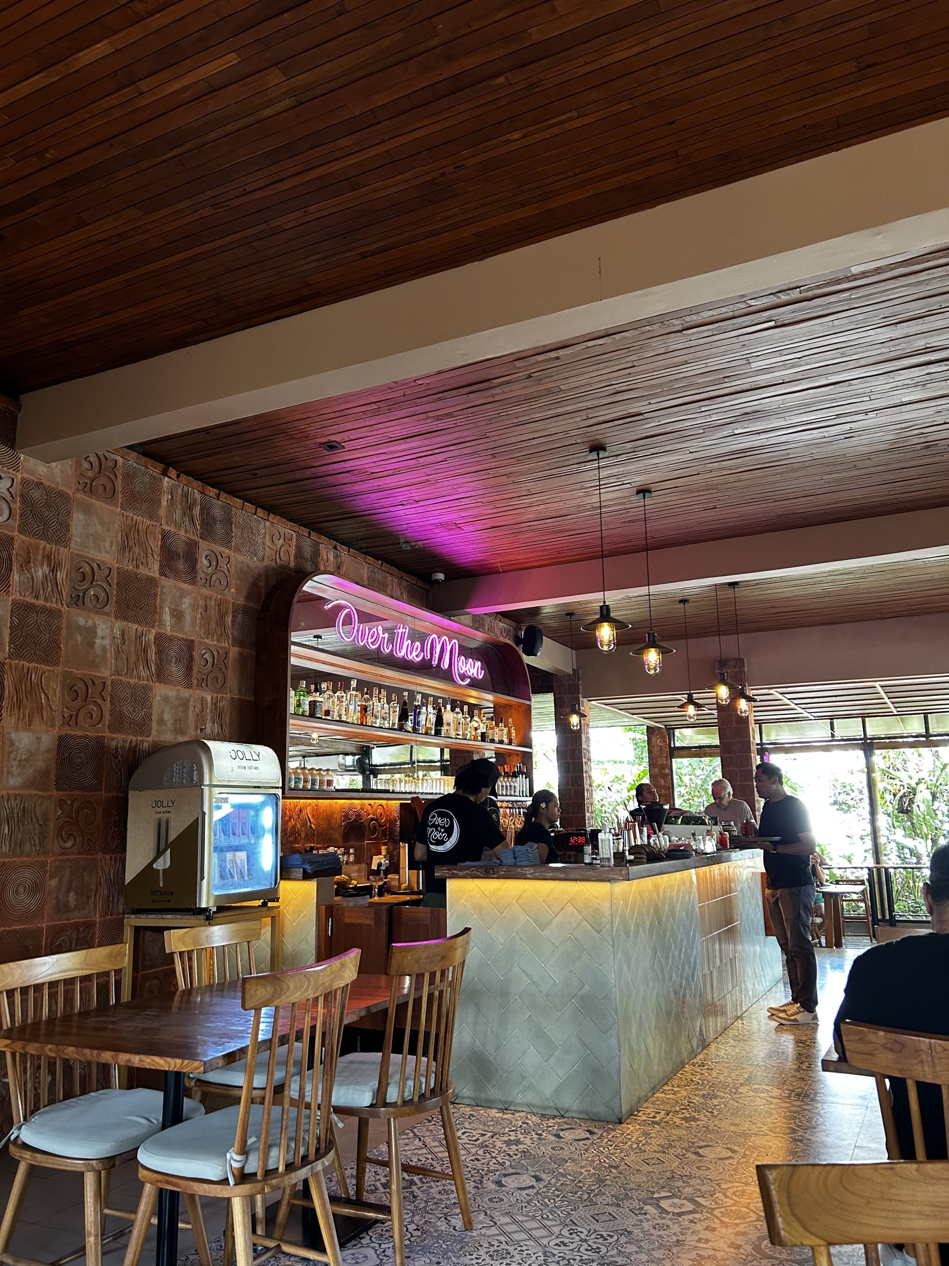 Terlihat pemandangan para pelanggan yang menikmati harumnya aroma makanan dan lezatnya hidangan sambil mengerjakan pekerjaan mereka. Dentingan gelas-gelas yang terisi dengan minuman menyegarkan. Parkiran yang luas dengan penjagaan yang dapat diandalkan. Namun, bila menjelajah lebih dalam, Over The Moon bukan hanya suatu cafe biasa di Sanur, melainkan juga tempat yang menyajikan kebahagiaan sebagai menu utama. Sebuah cafe yang menyejahterakan juga, di mana para pegawai punya kesempatan mengembangkan diri mereka melalui pelatihan-pelatihan yang diadakan, dan di setiap sesi itu selalu ditanamkan bahwa cinta terhadap lingkungan yang diwujudkan dengan aksi sungguhan adalah hal penting karena sudah menjadi nilai tersendiri di Over The Moon. Tidak hanya itu, terjadi ikatan erat antara pegawai dengan pelanggan yang membuat kecintaan terhadap lingkungan itu terbentuk semakin kuat. Begitulah pengantar dari Kak Lia Ardisasmita – yang menceritakan Over The Moon dengan senyum antusias di wajahnya.
